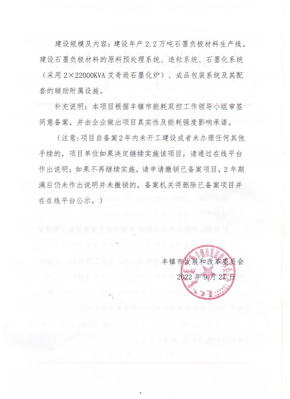 內(nèi)蒙古自治區(qū)豐鎮(zhèn)市企業(yè)投資項(xiàng)目備案告知書